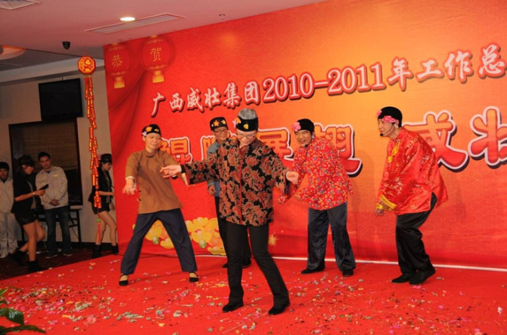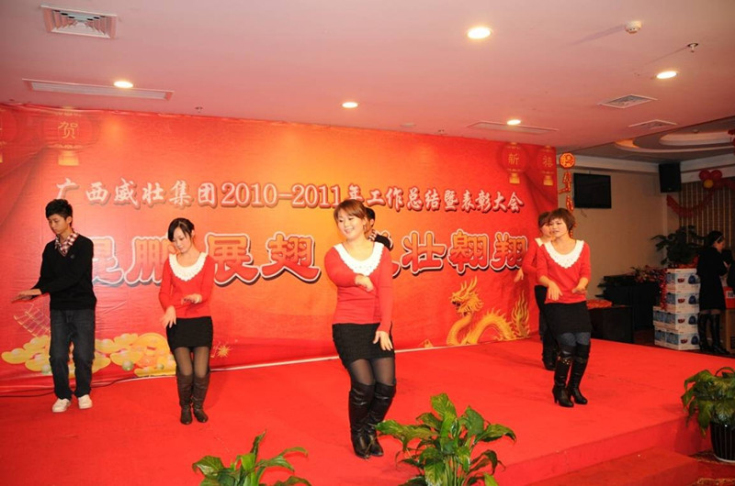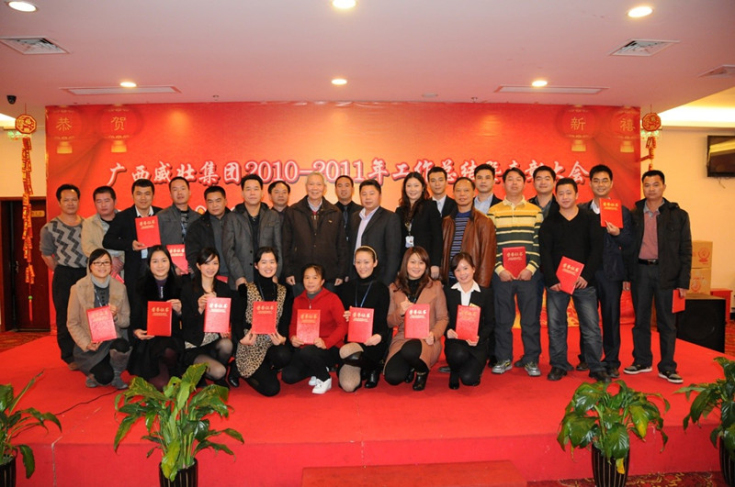 2012年1月16日,广西威壮集团2010-2011年工作总结暨表彰大会在南宁铂丽菲酒店三楼综合大厅召开。集团领导及全体员工参加了本次年度盛会,会议还特别邀请了集团总顾问黄业恩先生出席。