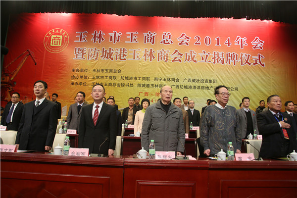 12月16日,玉林市玉商总会2014年会暨防城港玉林商会成立揭牌仪式在防城港隆重举行。来自全国15个省(市、自治区)、港澳台地区以及广西区内14个地级市共31个商会、协会的玉林籍企业家代表700多人参加了会议。