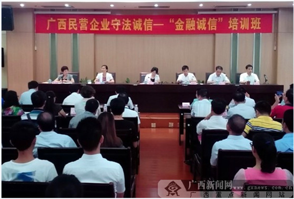 在培训班上,专家们为全区200多名民营企业董事长和高层管理人员进行系统培训,解答了新常态下银行和企业如何应对挑战和机遇?民营企业在不同的发展阶段,银行应提供哪些相应产品等问题。自治区领导在培训班上指出,在当前经济发展新常态下,广西民企要充分利用好广西前所未有的发展新机遇,用好自治区党委、政府最近出台的《关于千方百计做好稳增长工作的意见》中的惠企政策找准转型升级新路子。各级政府,各级工商联、企业要学好、用好政策,做到上下联动,积极推动新“48条”广西民营企业守法诚信“金融诚信”培训班的贯彻落实,在新的形势下积极主动地为民营企业提供新的服务。企业要运用好传统金融模式和金融创新的产品,要通过资本市场募集的资金,比如新股发行、增发股票、兼并重组、私募基金投资等为企业发展注入活力。