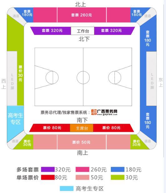 为了开拓广西职业篮球的新局面,大力推进广西篮球事业的发展,威壮篮球俱乐部此次联赛票价给了非常大力度的优惠,单场票价最低30元,最高80元;多场套票最低180元,最高320元。