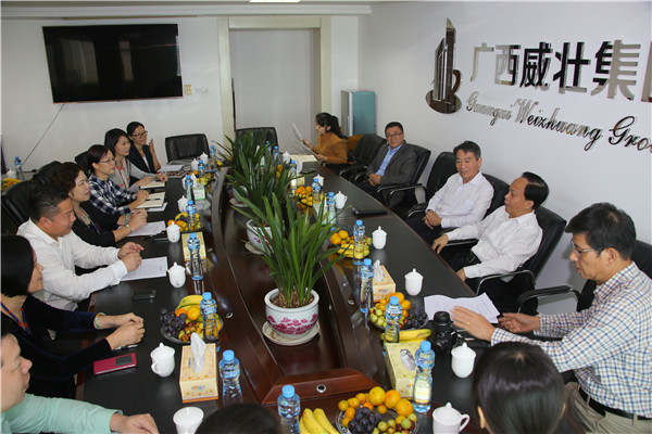 首先容小宁常务副主席说明了此次来访威壮集团的目的:一是为了共享企业发展成果,二是加强互动增加了解,三是共谋发展。随后从广西中华文化促进会发展史、性质、宗旨、工作范围、发展成果等多方面详细地介绍了广西中华文化促进会,希望在广西文化建设方面做得比较好、对广西文化建设作出贡献的单位能加入广西中华文化促进会成为会员,共同搭建平台、分享资源、解决问题,更好地促进企业和广西文化建设工作的发展。