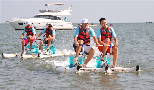 随后由集团行政总监林影明为活动致开幕词,林总表示,这次的户外活动旨在丰富员工的文娱生活,增进员工之间的感情交流,提高团队凝聚力和向心力,同时让员工亲自体验三块石海洋乐园部分旅游营运项目,为今后项目试营业提供更好的改善意见和建议。希望大家尽情地玩,尽情地乐,尽情地体验户外活动的乐趣,并通过活动项目发扬威壮人“团结协作、勇于拼搏、永不言弃”的精神面貌。