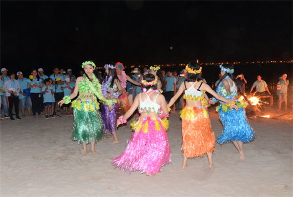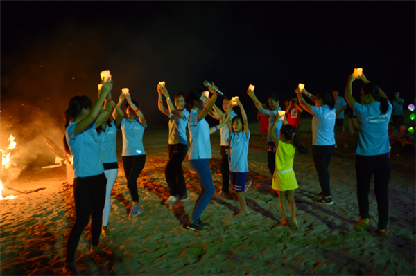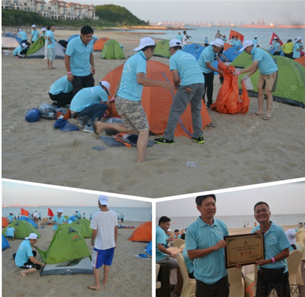 本次为期两天的活动内容丰富多彩,并通过精心策划分六个团队——快乐满屋队、三海队、高35班、冠军承包队、南粤纵队、辉煌队,开展团队展示、水上接力比赛、皮划艇比赛、搭帐篷比赛、才艺大比拼、沙滩气排球比赛、篮球技术扣篮比赛7个户外竞技游戏,同时还在三块石海洋乐园浪漫的沙滩上进行才艺表演、篝火晚会等节目。整个活动现场热火朝天、精彩纷呈!
