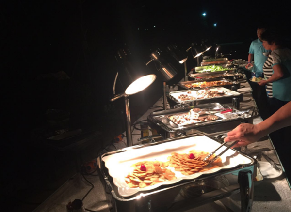 为了增进感情,放松身心,大家还沐浴在漫天星空下尽享自助海鲜大餐带来的无限欢愉。