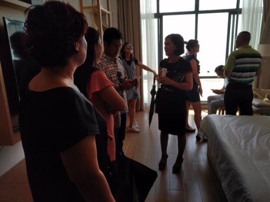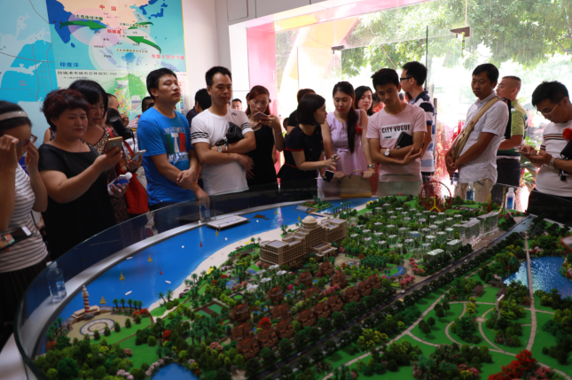 仪式后,三块石海洋乐园项目销售中心置业顾问在销售中心内向社会各界朋友现场介绍了项目情况和沙盘推介,随后前往项目实地参观景区、公寓样板间、别墅样板间。