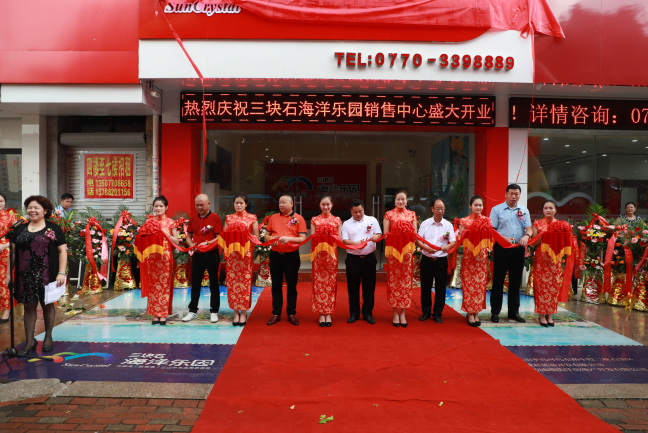 剪彩后,终于到了振奋人心的揭牌时刻,黄东董事长、郑修迎董事长为三块石海洋乐园项目销售中心揭开了红色帷幕,这也标志着的三块石海洋乐园倾情力作的度假臻品,正式推向市场接受客户咨询。