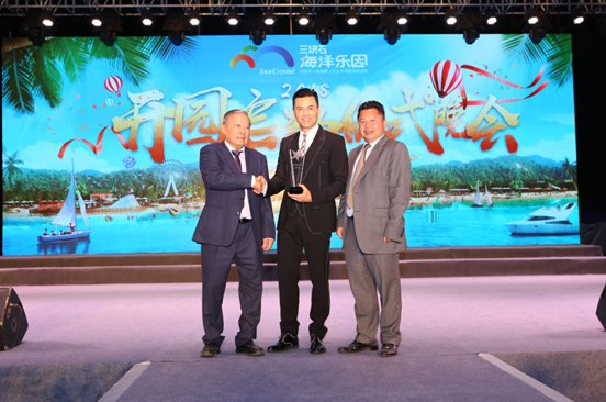 当晚,在三块石海洋乐园启动仪式上,世界华人协会程万琦会长进行致辞,程万琦会长说:“三块石海洋乐园开园,是威壮集团又一扛鼎之作,对提升江山半岛周边环境,丰富城市功能、促进防城港旅游业态发展将发挥积极的作用。”同时,程万琦会长和世界华人协会副主席、广西威壮集团董事长黄东代表世界华人协会为香港著名影星吕良伟先生颁发世界华人杰出奖杯。