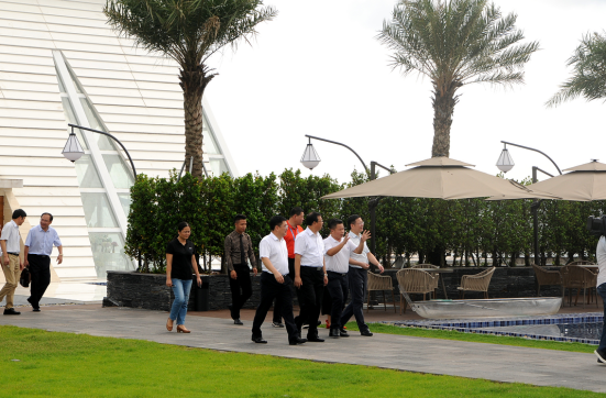 集团黄东董事长对莅临的领导进行了热情的接待,并汇报了有关项目运营、基础设施完善及二期建设规划等具体情况,得到了来访领导的高度重视和一致认可。希望我们能够抓住机会,抢占先机,利用好防城港边境旅游试验区建设的政策,把我们项目打造得越来越好。