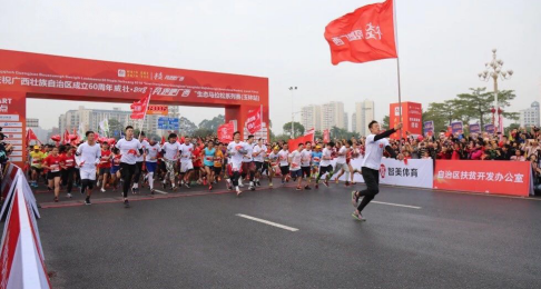 2018年11、12月,防城港、玉林、南宁等地相继开展全民马拉松比赛,威壮集团利用这三地均有项目的优势,积极组队参与,共有115名员工报名参赛。其中,玉林站马拉松赛事由我集团冠名赞助,黄东董事长为赛事鸣枪开跑,广西威壮篮球俱乐部球员李明浩等作为赛事领跑团成员领跑,威壮人成为了玉林站马拉松赛事一道亮丽的风景线。广西威壮篮球俱乐部自2017年末落户玉林以来,大力发展体育产业,引领玉林全民健身,并通过赞助马拉松(玉林站)赛事进一步激发玉林人民健身的热情,带领8000名选手共同奔跑迎接自治区成立60周年的到来。