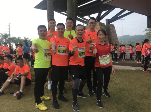 赛前,10公里参赛员工在给自己和团队加油鼓劲!