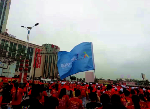 赛前,4公里参赛员工在给自己加油鼓劲,团结就是力量!
