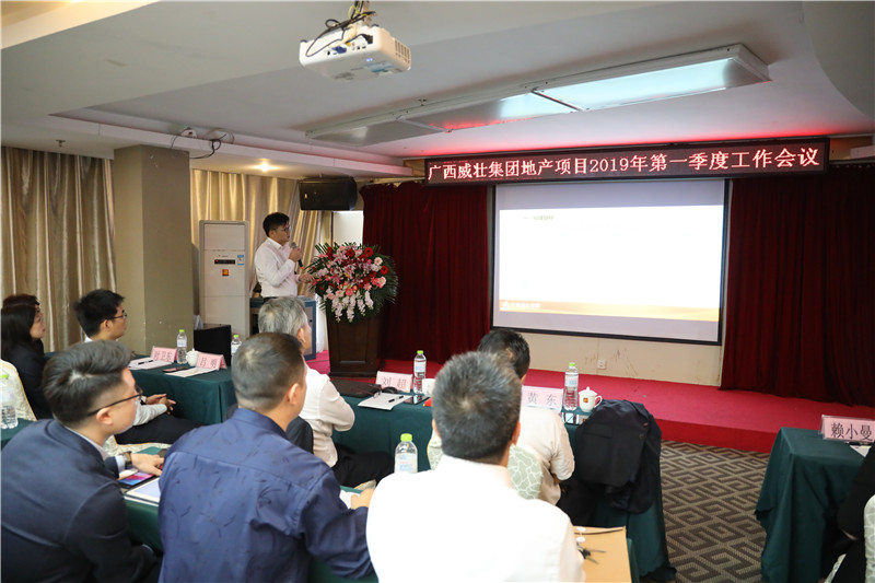 2019年4月13日,为更好总结2019年第一季度各项工作完成情况和落实第二季度工作目标,广西威壮集团地产项目2019年第一季度工作会议在南宁铂丽菲酒店召开。集团董事长黄东、集团总经理刘超出席会议并作讲话,集团高管及地产项目相关部门负责人参加会议。
