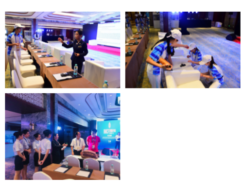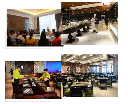 对厨房帮厨人员开展培训,同时根据防城港市政府要求一遍又一遍地仔细斟酌、确认菜单,一遍一遍地整理餐厅餐具摆放,抓好每一个细节工作。