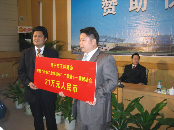 2007年11月,我集团黄东董事长在广西壮族自治区第十一届运动会赞助仪式上给运动会捐款21万元人民币。