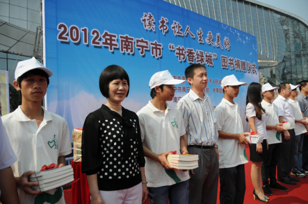 2012年4月23日上午,2012年南宁市“书香绿城”图书捐赠仪式在广西科技馆举行,在捐赠仪式上,许多爱心企业都纷纷想农民工子弟赠送图书。威壮集团及南宁玉林商会也积极加入到爱心活动中,为农民工子弟捐赠图书1000多册。