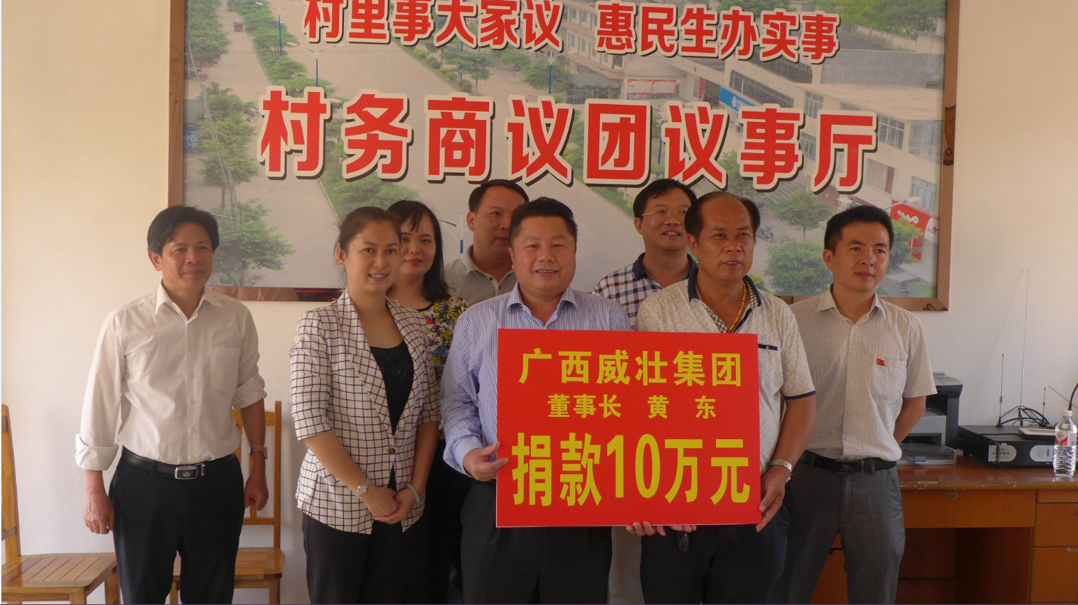 广西威壮集团一直以来对扶贫济困公益活动非常重视,积极响应国家“万企帮万村”精准扶贫行动,制定切实可行的扶贫帮困计划,资助解决贫困户生产、生活面临的困难,提高贫困户脱贫发展造血功能,大力弘扬中华民族扶贫济困、乐善好施的优良传统,以实际行动倡导和发扬感恩奉献、团结互助的正能量精神。