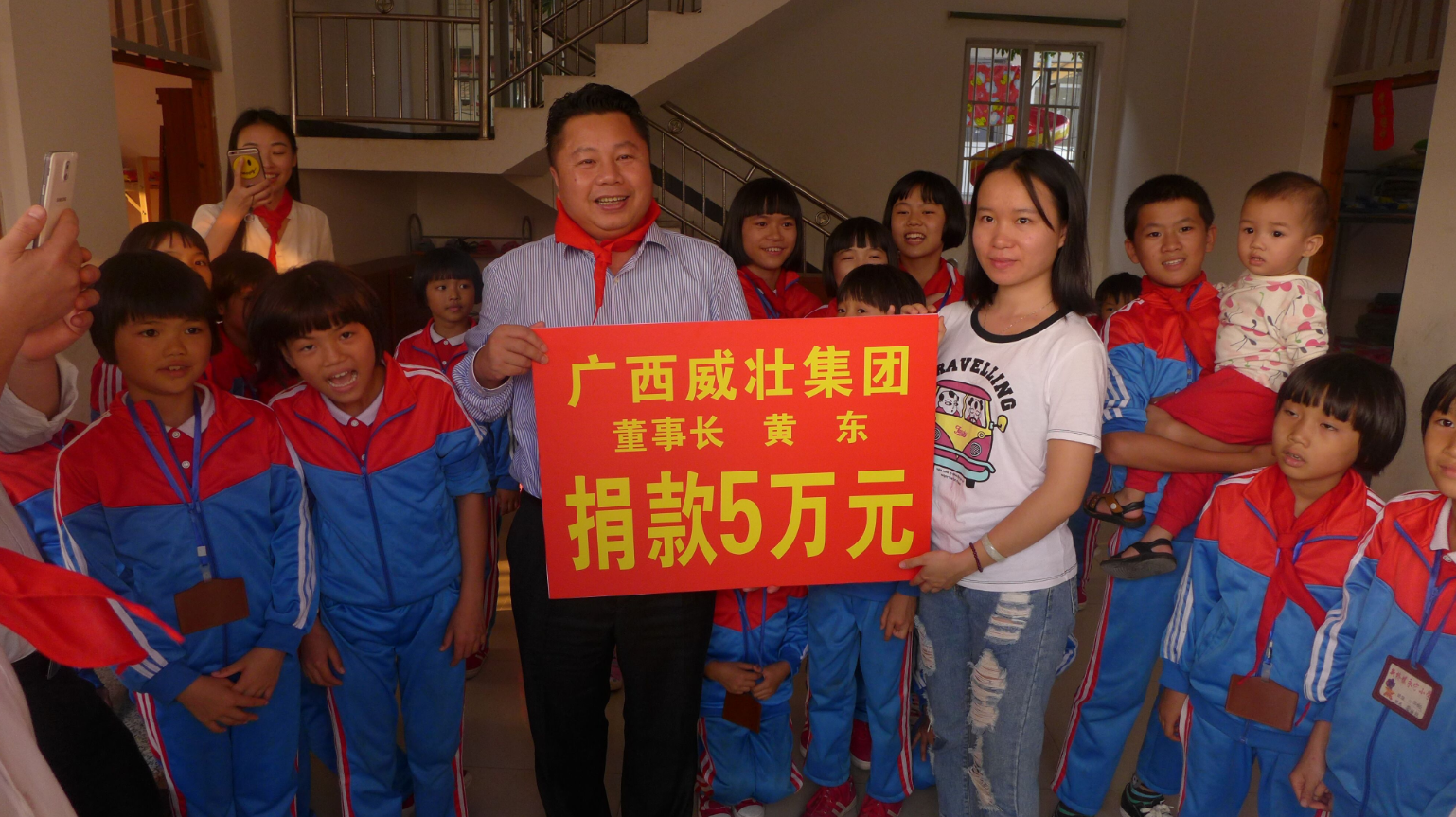 随后,黄东董事长前往玉林福绵区新桥镇永宁小学的东昌之家看望孤儿院的小朋友们并捐款5万元用于解决孤儿院的教学生活开支,并在院长的带领下参观了小朋友们的教室、食堂,细心的了解他们的生活和成长状况,和小朋友一起其乐融融的唱歌、合照,小朋友们的脸上洋溢着幸福开心的笑容。据悉,黄东董事长不仅出资为东昌之家孤儿院建设两栋大楼用于上课学习、住宿、食堂、厨房、职工办公等方面,同时每年都会向孤儿院进行捐款用于孤儿院的日常学习、生活开支。黄东董事长表示:“希望能尽自己的绵薄心意关爱、栽培祖国的花朵,改善小朋友的学习生活水平,期待他们刻苦学习,回报社会,成为国家栋梁。”