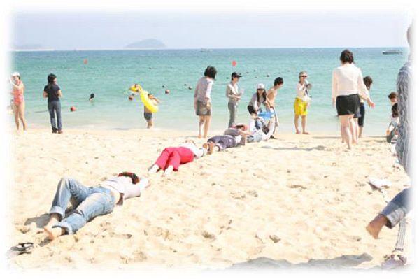 在海边度假