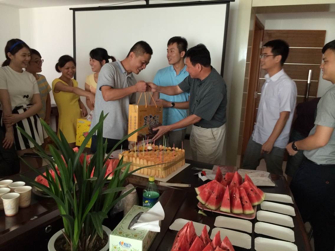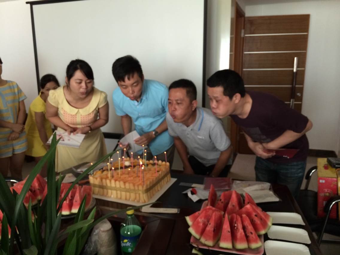 伴随着“祝你生日快乐,祝你生日快乐……”的音乐声,大家齐聚在一起为7月份的寿星送上祝福,寿星们在欢乐的氛围中吹蜡烛许下美好的生日愿望,同时,每位寿星都获得了一张满载董事长及同事们寄语的生日贺卡!