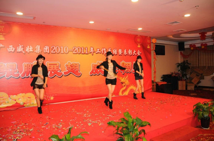 2012年1月16日,广西威壮集团2010-2011年工作总结暨表彰大会在南宁铂丽菲酒店三楼综合大厅召开。集团领导及全体员工参加了本次年度盛会,会议还特别邀请了集团总顾问黄业恩先生出席。