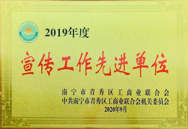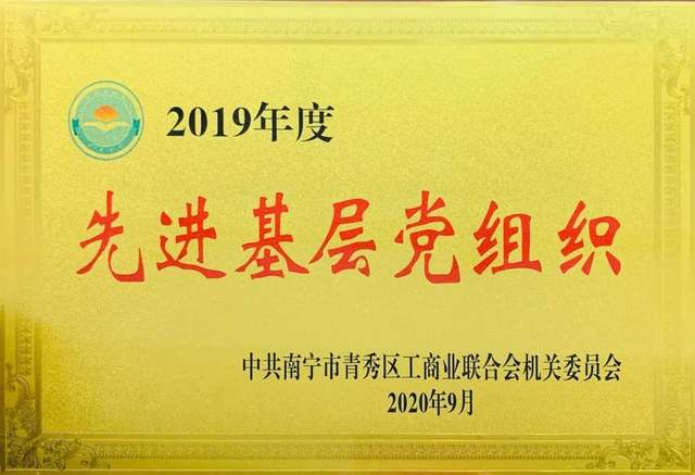 2020年11月,集团党总支部荣获青秀区工商联机关党委授予的2019年度先进基层党组织、宣传工作先进单位、民营企业调查点工作示范企业等荣誉称号。