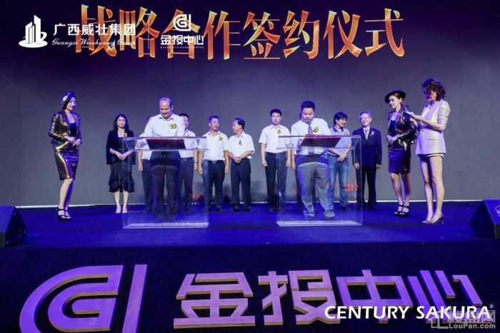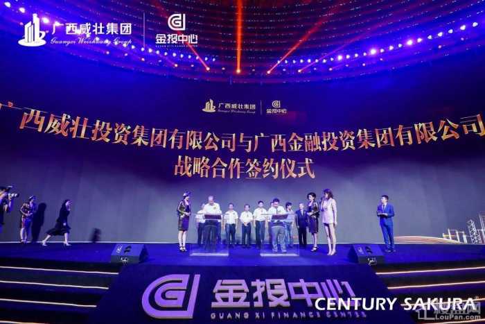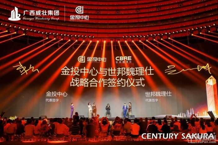 发布会盛典上,亮点多多,广西金融投资集团和广西威壮集团正式签署战略合作,两大集团终于强强联手,对话东盟商务区。同时,广西威壮集团与全球前五的世邦魏理仕物业正式签约,将世界500强物业引入金投中心,为金投中心未来优质物管服务奠定了基石。