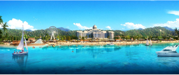 项目整体规划建设有:星级度假酒店、游客中心、游艇码头、婚礼小岛、婚拍基地、海上运动基地、水上乐园、无边泳池、SPA养生浴池、滨海浴场、钛沙疗养、沙滩酒吧、大型停车场等旅游配套设施于一体的四季型滨海度假景区。正式运营后,将成为可同时接待千人食宿、近万人游玩的大型综合滨海度假旅游目的地,成为北部湾乃至全国的精品旅游景区标杆。