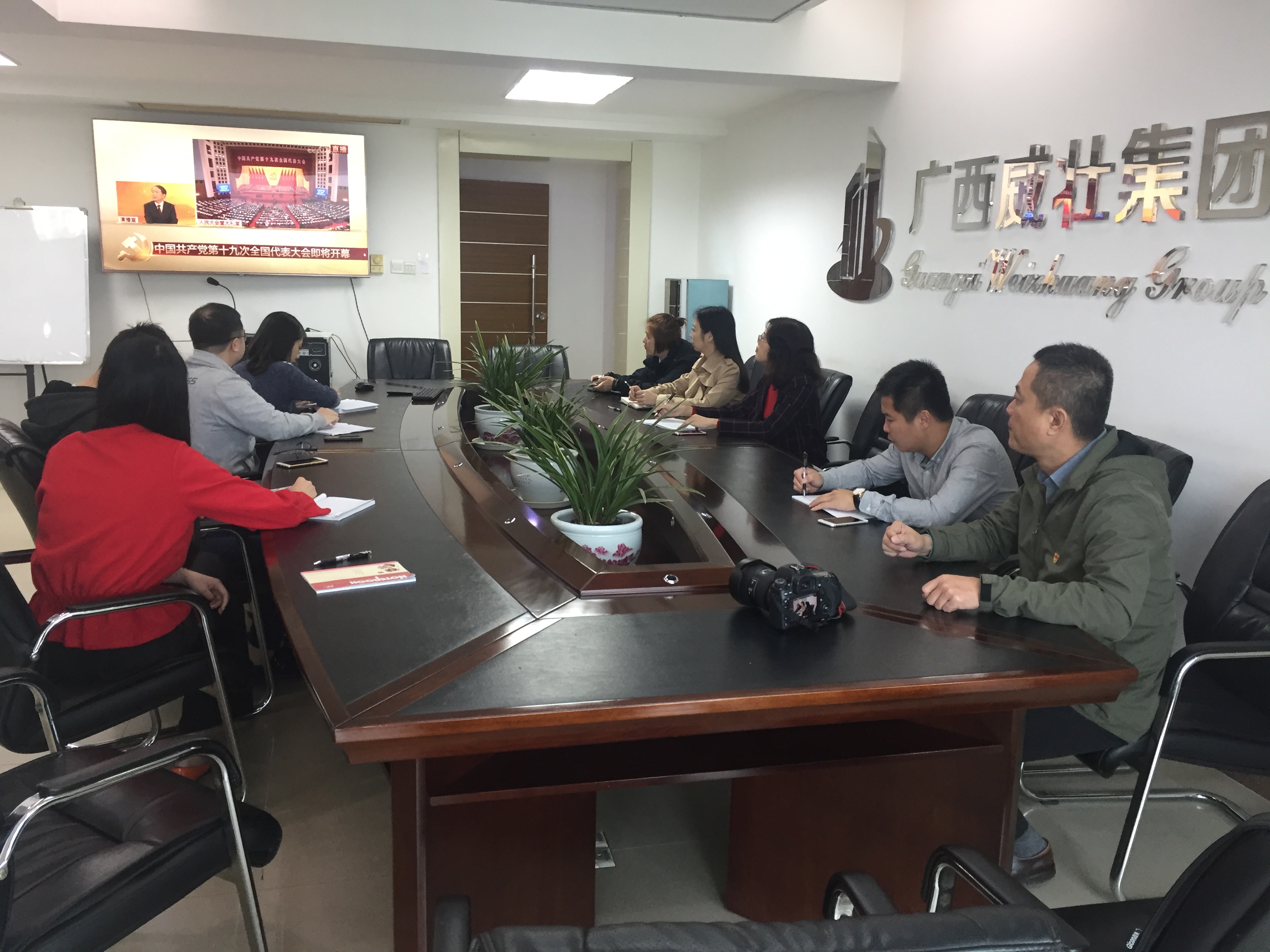 2017年10月18日,中国共产党第十九次全国代表大会在北京人民大会堂隆重召开,广西威壮集团党支部于今天上午9:00组织各位党员齐聚集团会议室共同观看十九大直播,学习十九大有关内容和精神。
