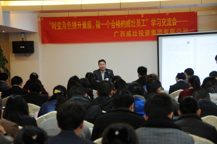 如何更好的融入威壮企业文化?如何转变思想提升素质?如何用实际行动回报威壮?如何利用威壮各种平台,体现自己的人生价值?如何真正成为一个合格的威壮员工?2013年12月26日,以“转变角色提升素质,做一个合格的威壮员工”为主题的广西威壮集团2013年全员培训大会在南宁铂丽菲酒店隆重举行。