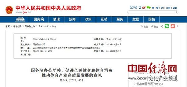 国务院办公厅关于促进全民健身和体育消费推动体育产业高质量发展的意见