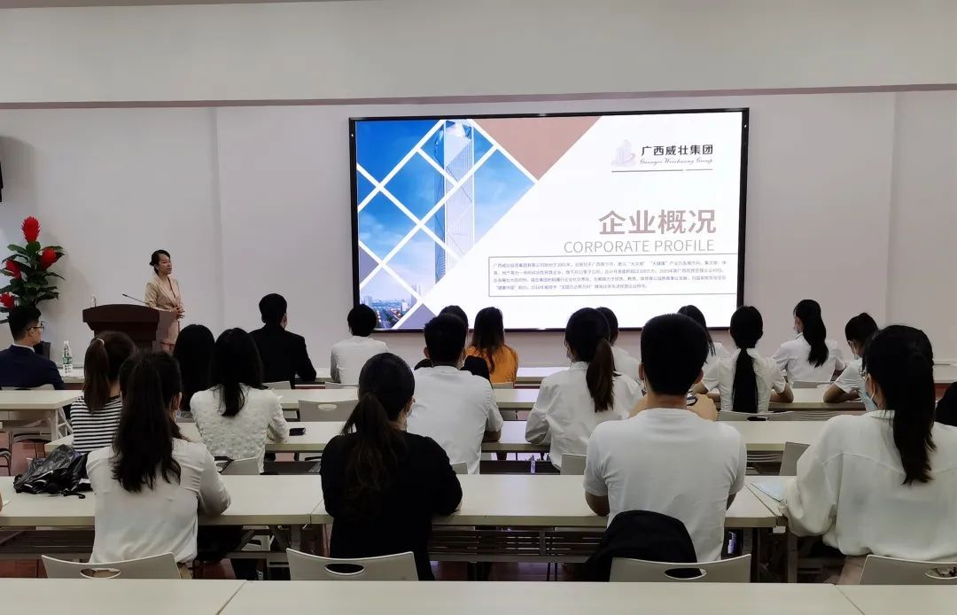 5月22日,广西威壮集团集团总部人力资源部经理林华、董事办副主任杨方舟、财务部副经理姚雪球及南宁铂丽菲酒店副总经理李志义一行前往广西民族大学举办威壮集团专场招聘宣讲会。当天共40余名优秀毕业生参加了宣讲会。