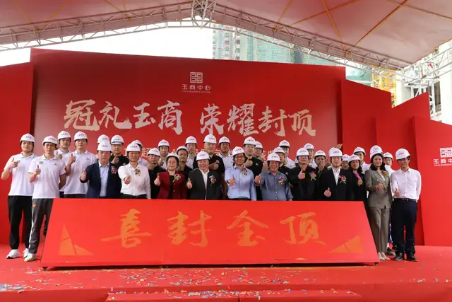 封顶仪式的圆满礼成,标志着一个阶段工作的完美落幕,同时也是一个全新篇章的开启。玉商中心将秉承玉商人的匠心精神,不忘初心,勇往直前,为打造玉林商务新标杆交上一份满意的答卷。