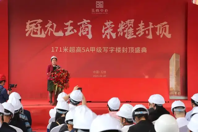 2021年4月20日,玉林玉东新区城市综合体项目玉商中心核心建筑玉商大厦,171米超高5A甲级写字楼,迎来荣耀封顶,以城市封面坐标性建筑的身份,焕新玉林商务新时代。