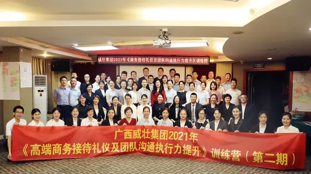 高质量发展离不开高素质人才。为进一步提升集团公司行政、财务、销售等管理岗位的岗位技能,提升团队执行力,增强职工礼仪素养,塑造集团服务新形象,5月7-8日,广西威壮集团于南宁铂丽菲酒店组织开展2021年《商务接待礼仪及团队沟通执行力提升》训练营(第二期)活动,来自集团总部及各业务板块公司的60多名员工参加了此次培训。