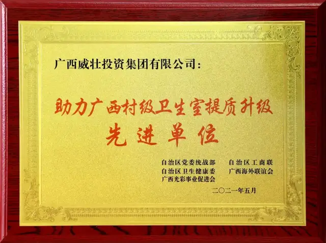 广西威壮集团荣获“助力广西村级卫生室提质升级先进单位”称号