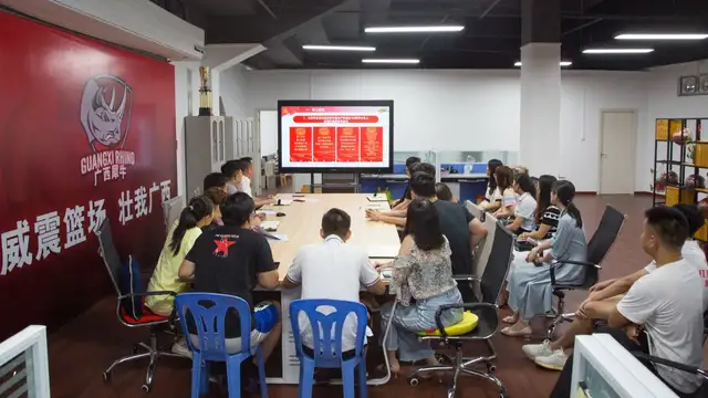 备战训练期间,玉林市篮球协会主席陈奎一行来到广西威壮篮球俱乐部指导工作,并参观球队训练。他表示,希望威壮能继续扎根玉林,给予更多热爱篮球的青少年及篮球爱好者一起学习互动的机会,同时他也希望玉林社会各界、篮球爱好者能给予俱乐部更多的支持。