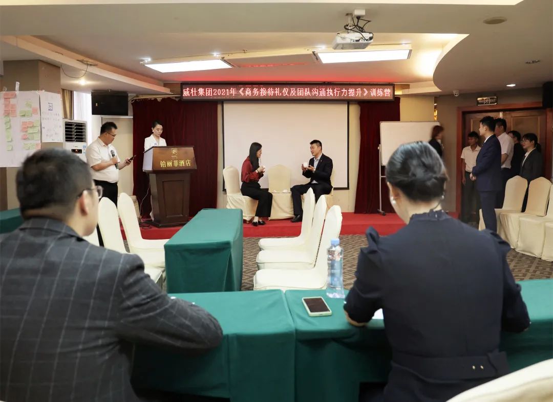 为进一步提升集团公司行政、财务、销售等管理岗位的岗位技能,提升团队执行力,增强职工礼仪素养,塑造集团服务新形象,5月7-8日,广西威壮集团于南宁铂丽菲酒店组织开展2021年《商务接待礼仪及团队沟通执行力提升》训练营(第二期)活动,来自集团总部及各业务板块公司的60多名员工参加了此次培训。