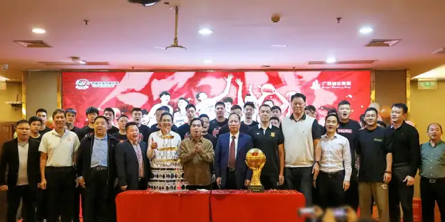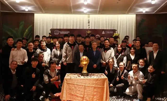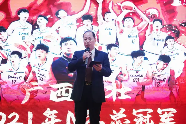 11月19日,广西篮球协会与广西威壮篮球俱乐部共同在南宁铂丽菲酒店举行夺冠庆功答谢宴。自治区政协原副主席黄道伟,自治区体育局副局长卢意文,广西篮协主席韦茂繁,自治区人大常委会原副秘书长、现羽毛球协会主席甘益伟及各相关部门领导、威壮男篮全体将士、球迷代表、媒体记者,齐聚一堂,分享冠军喜悦。